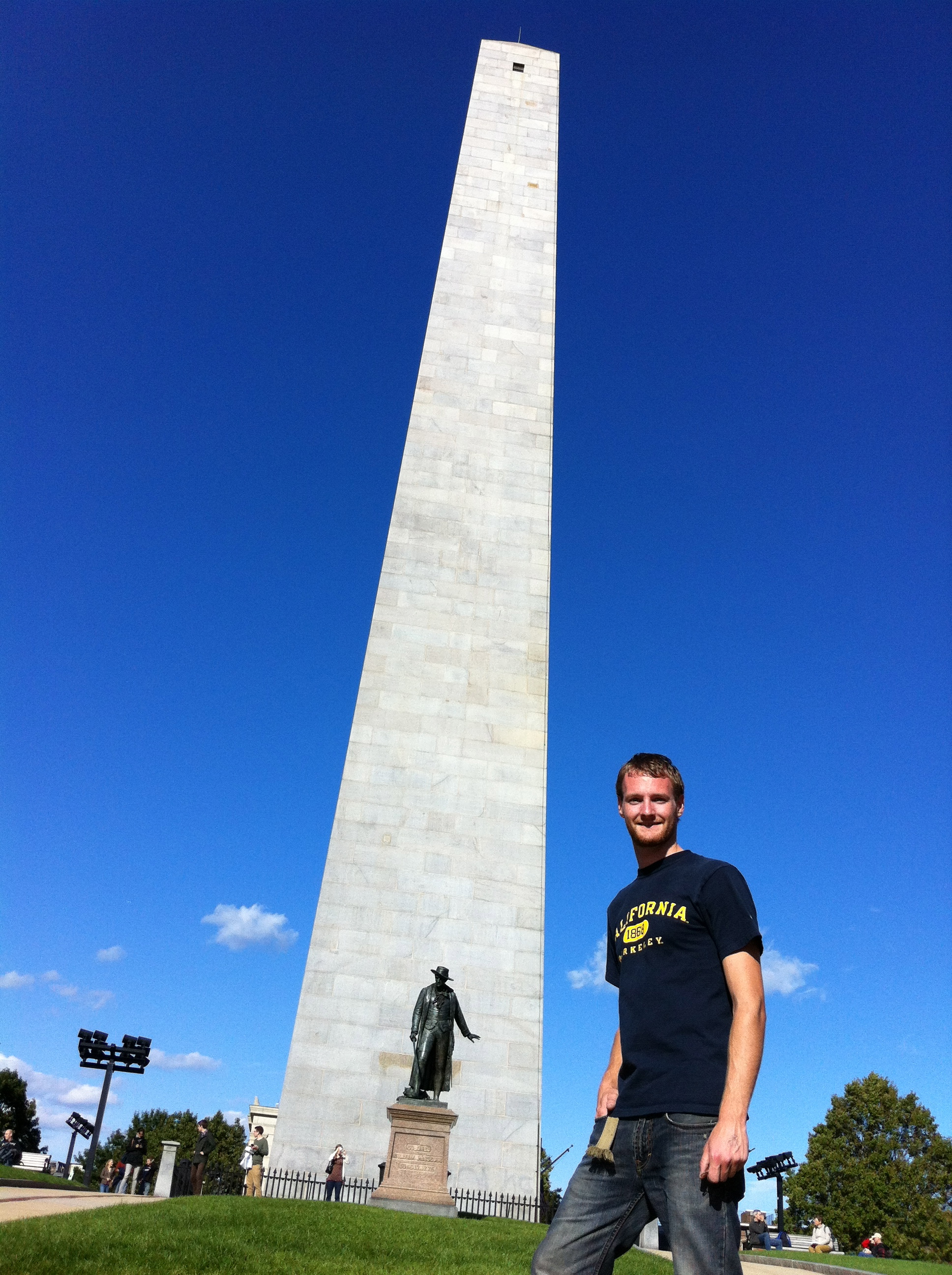 I climbed to 294 steps to the top of the Bunker Hill Monument to check out the view. The spiral staircase that brings you to the top gradually gets narrower. So gradually that you don’t really notice until you have to pass someone by pressing you back flat against the wall. The room at the top is small, and was quite crowded, much more so than necessary. At the center of the room was a metal grate that lets you look down a central shaft 200 feet to the bottom of the monument. As tight as the tiny room got, no one wanted to stand on it… this was entertaining to watch. Also at the top was a park ranger who gets to climb all those stairs 10-15 times every week!