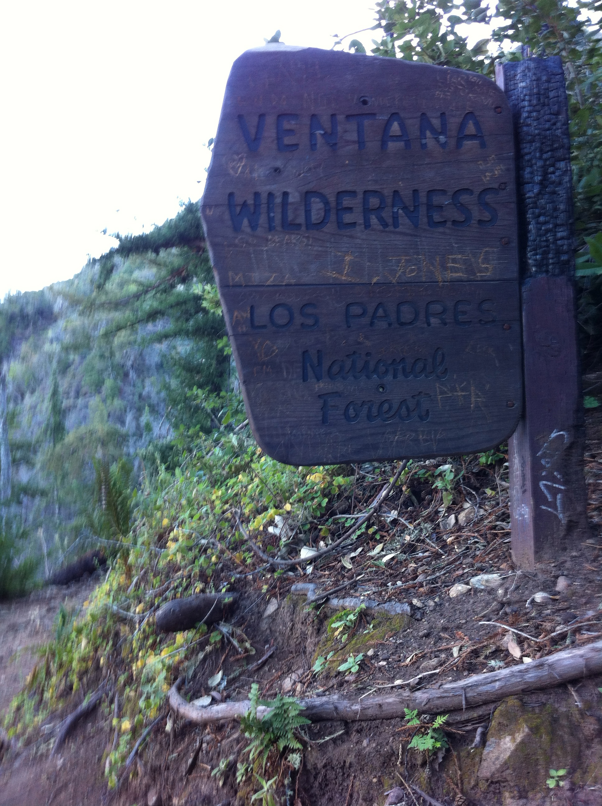 Ventana Wilderness. Damage from the wildfire can be seen on the sign post.