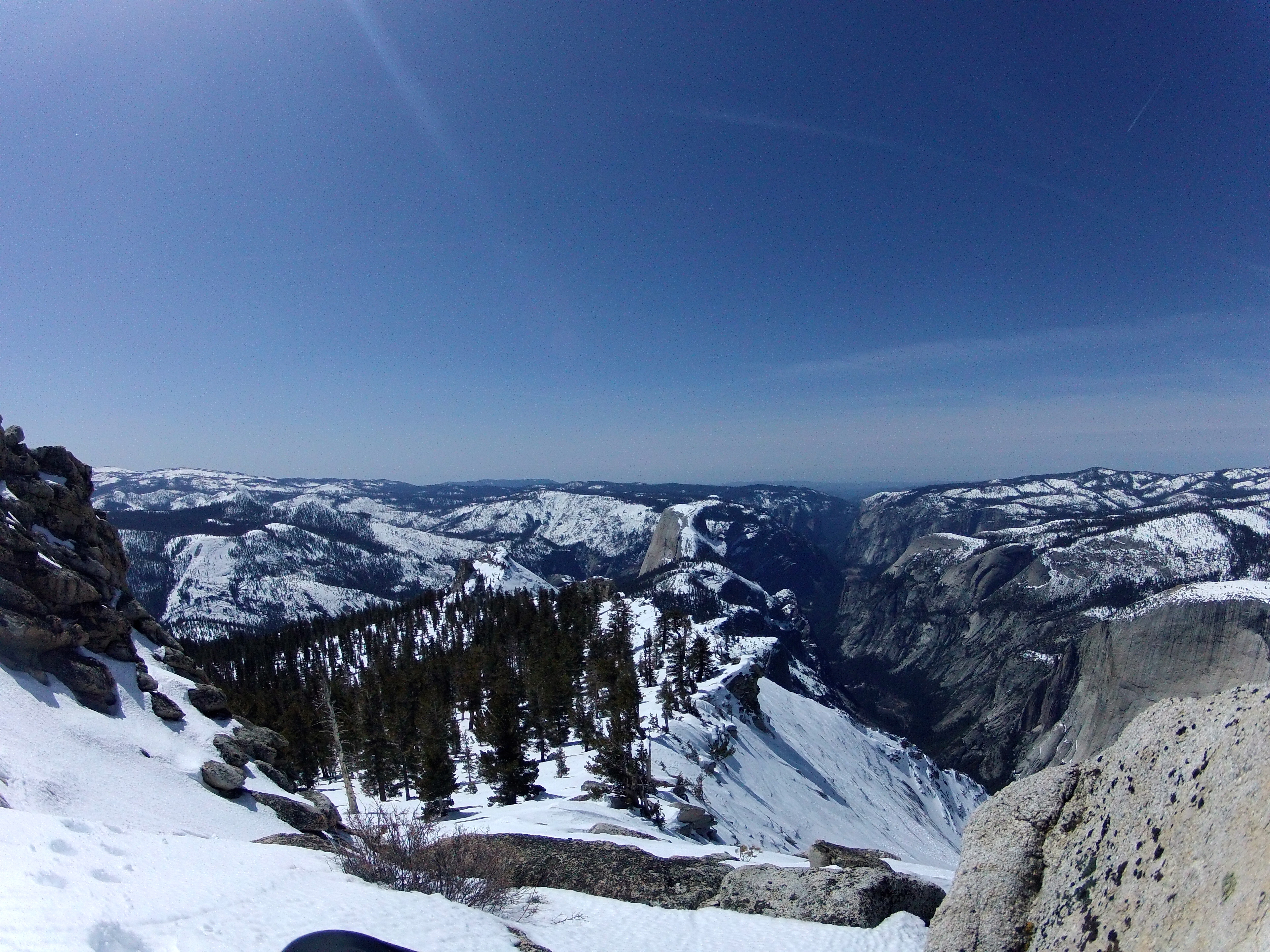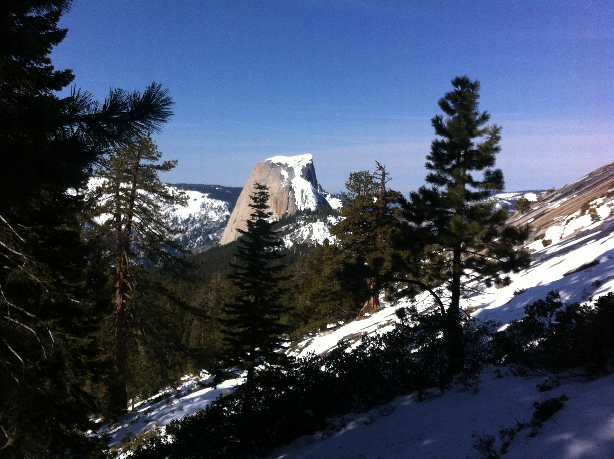 Continuing up the trail, the snow became a constant blanket under our feet. And after separating from the Half Dome trail we were given our first views of the surrounding area.