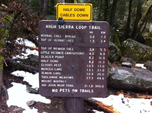 Permit in hand, we were on the trail! Since it was winter, a portion of the Mist trail was closed, diverting us to the John Muir Trail. This added about a mile, making the trip to LYV a little over 5 miles with about 2,200 ft of gain.