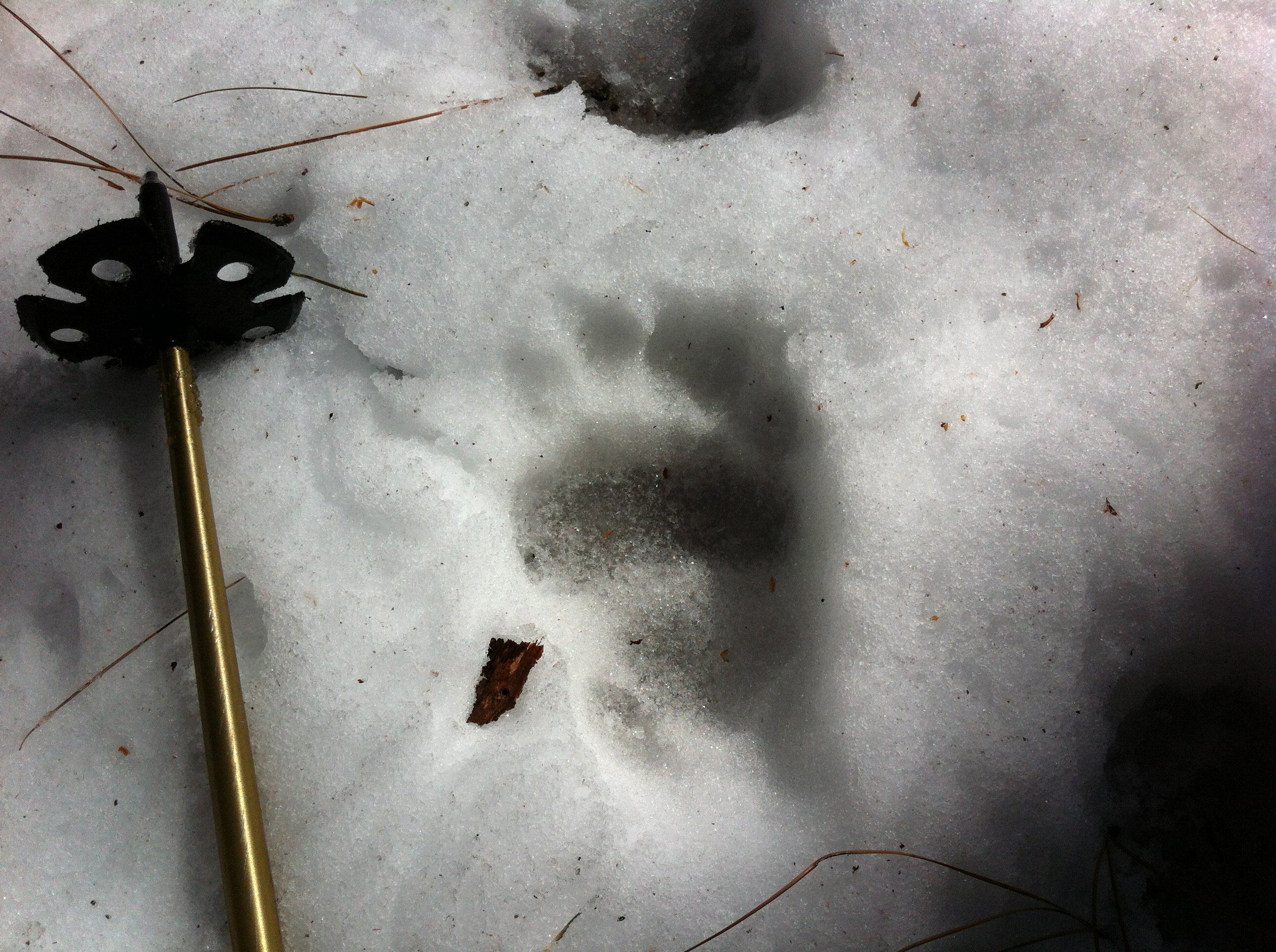 Being on a south facing slope kept the snow depth down, but as we climbed the snow slowly got deeper. We had been warned by the rangers that the bears had been very active this season, but we saw no evidence of the furry creatures around the campground. This was not the case on the trail… We came across many sets of bear tracks criss-crossing and following the trail. We even came across fresh tracks on the way back down!