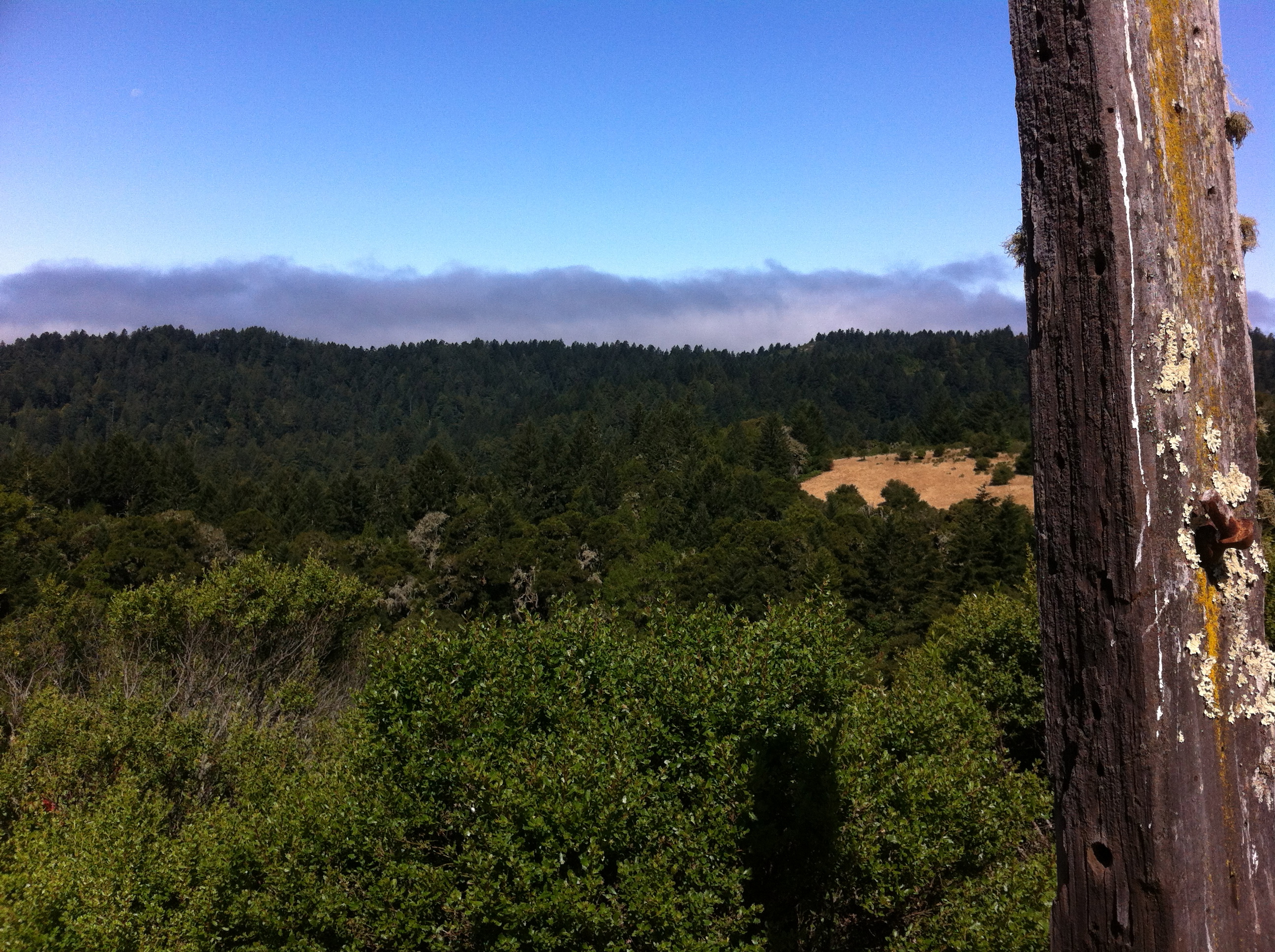 From here the trail took us out of the trees for a short while, giving us a view of the fog sitting over the hills to the west.