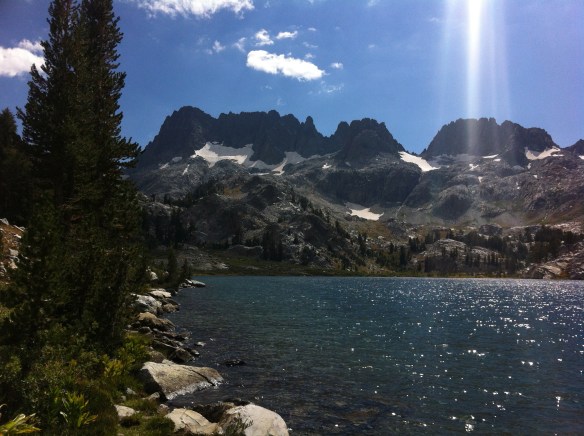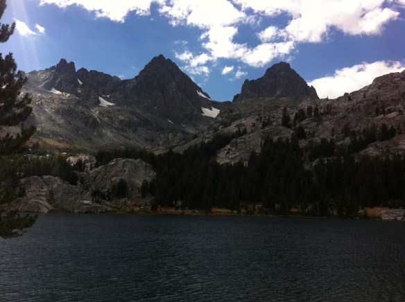 When we arrived at Ediza Lake it was about 3:00pm, and there were many tents visible along the opposite shoreline. We circled around the lake and worked our way up a stream towards the valley at the base of Ritter. While our camp was nestled in the trees giving us almost no view of the mountains, the trail around the lake offered a spectacular site!