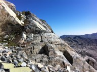 After a brief discussion, we decided that the lack of snow, and the loose rock made it unsafe for us to continue. We turned back…