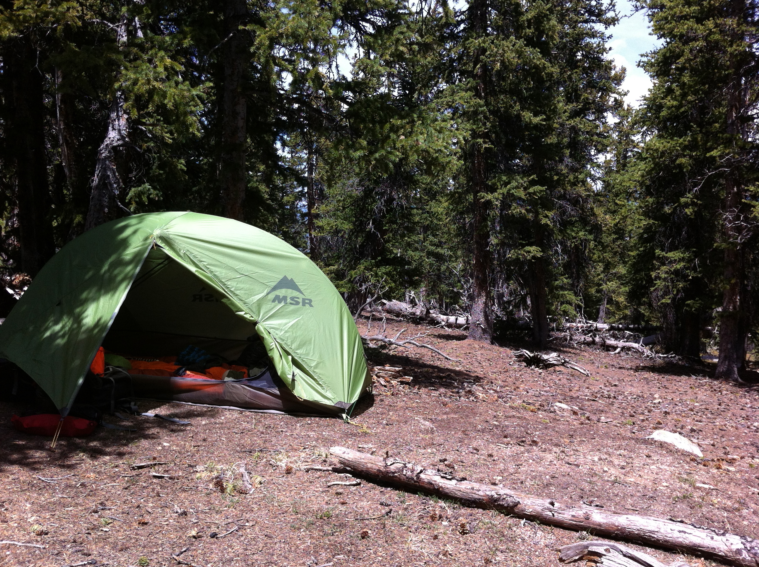 My parents hiked with me until we reached tree line where I would be making camp for the night. Above the trees the wind was blowing, but not as bad as on Quandary a few days earlier, so I descended a short ways below tree line to find a camp site.