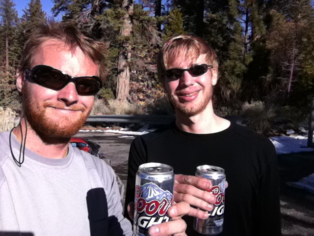 By 2PM we had made it back to the car! My body was thrilled to put down my pack and my feet happy to get out of my boots. Siting on the bumper, I thought back to the many trips I took during my time with the outdoor program in college, and remembered a few words of wisdom, “The trip’s not over until you’re drinking beers at the car.” The summit day on San Gorgonio was proof to that. The summit had been reached the previous day, but there was still much to push through to make it a successful summit trip. Now that we were back at the car, it was time for that victory beer!